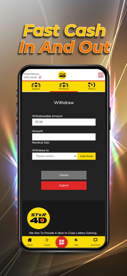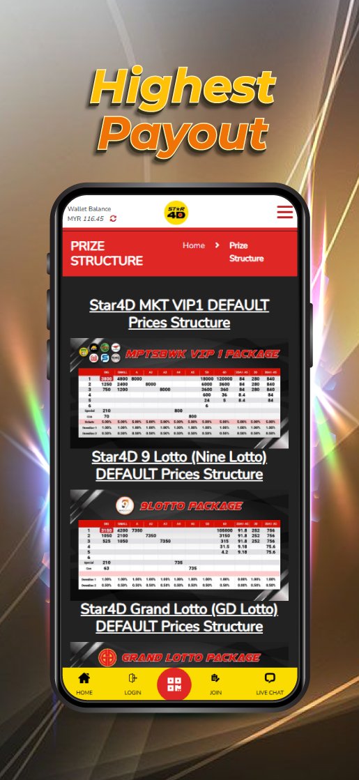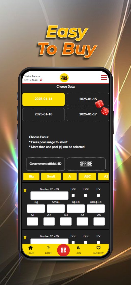 Welcome to Star4D, where we bring the excitement of lottery gaming right to your fingertips! We are a premier online lottery platform in Malaysia & Singapore, dedicated to providing a seamless and thrilling lottery experience to players around the region, sooner to expand with more gaming options to different regions.